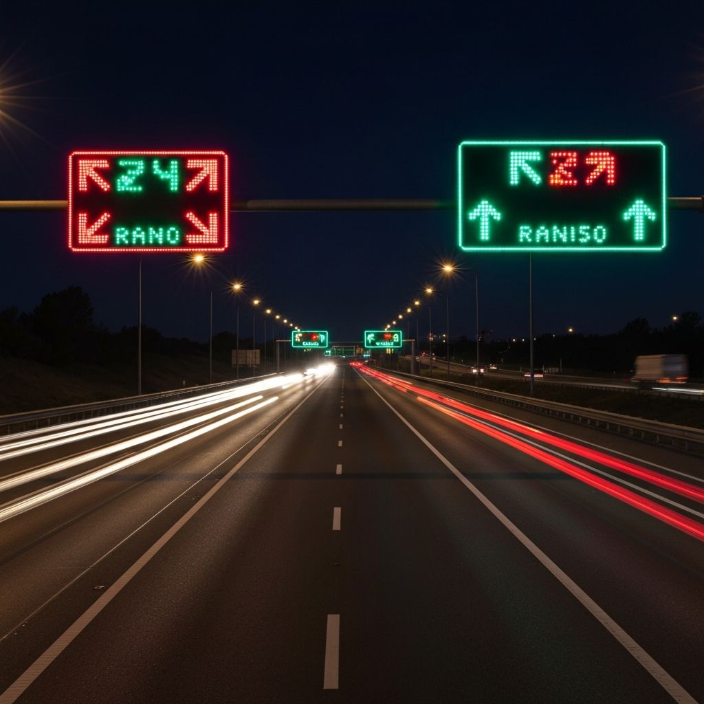 Intelligent traffic guidance systems and variable message signs (VMS). High-visibility LED displays designed for road safety and traffic management in all weather conditions.